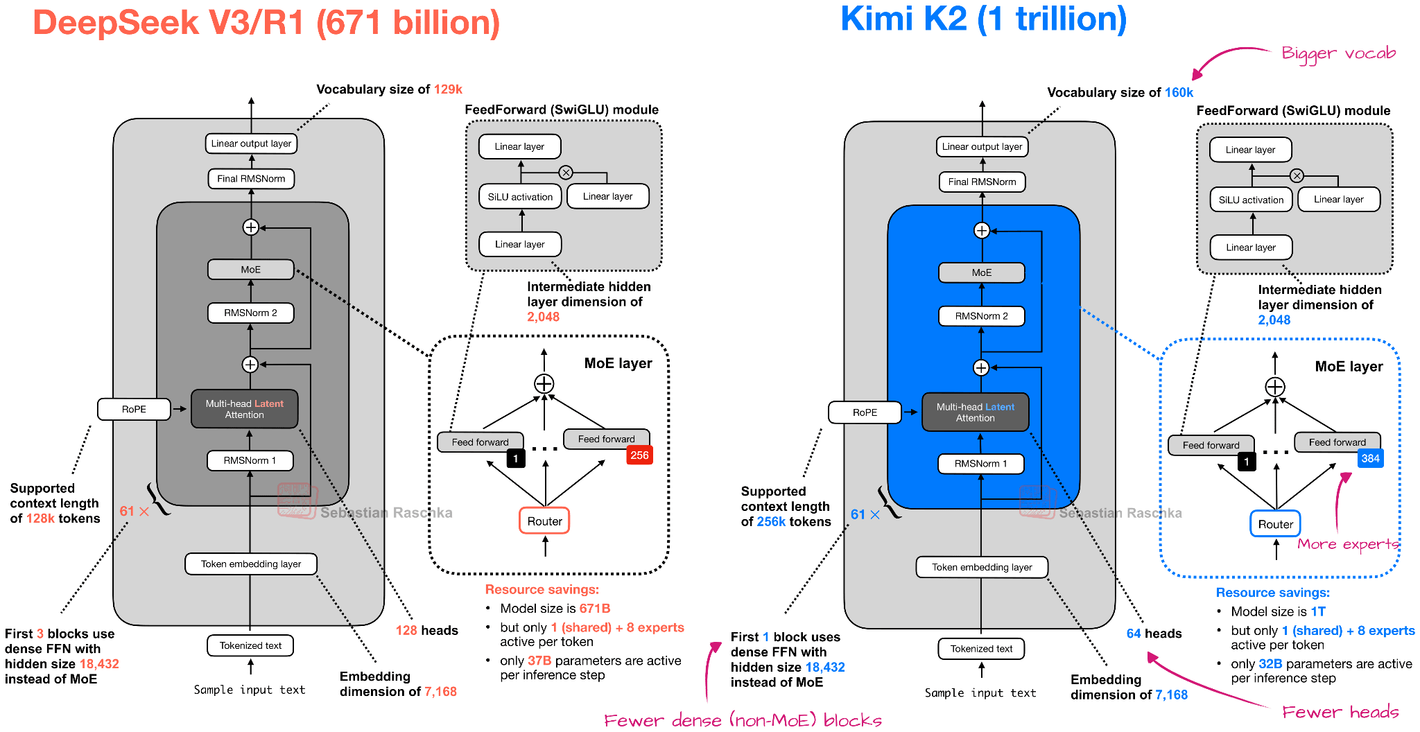Figure 8: Kimi K2 is a larger version of the DeepSeek V3 architecture.