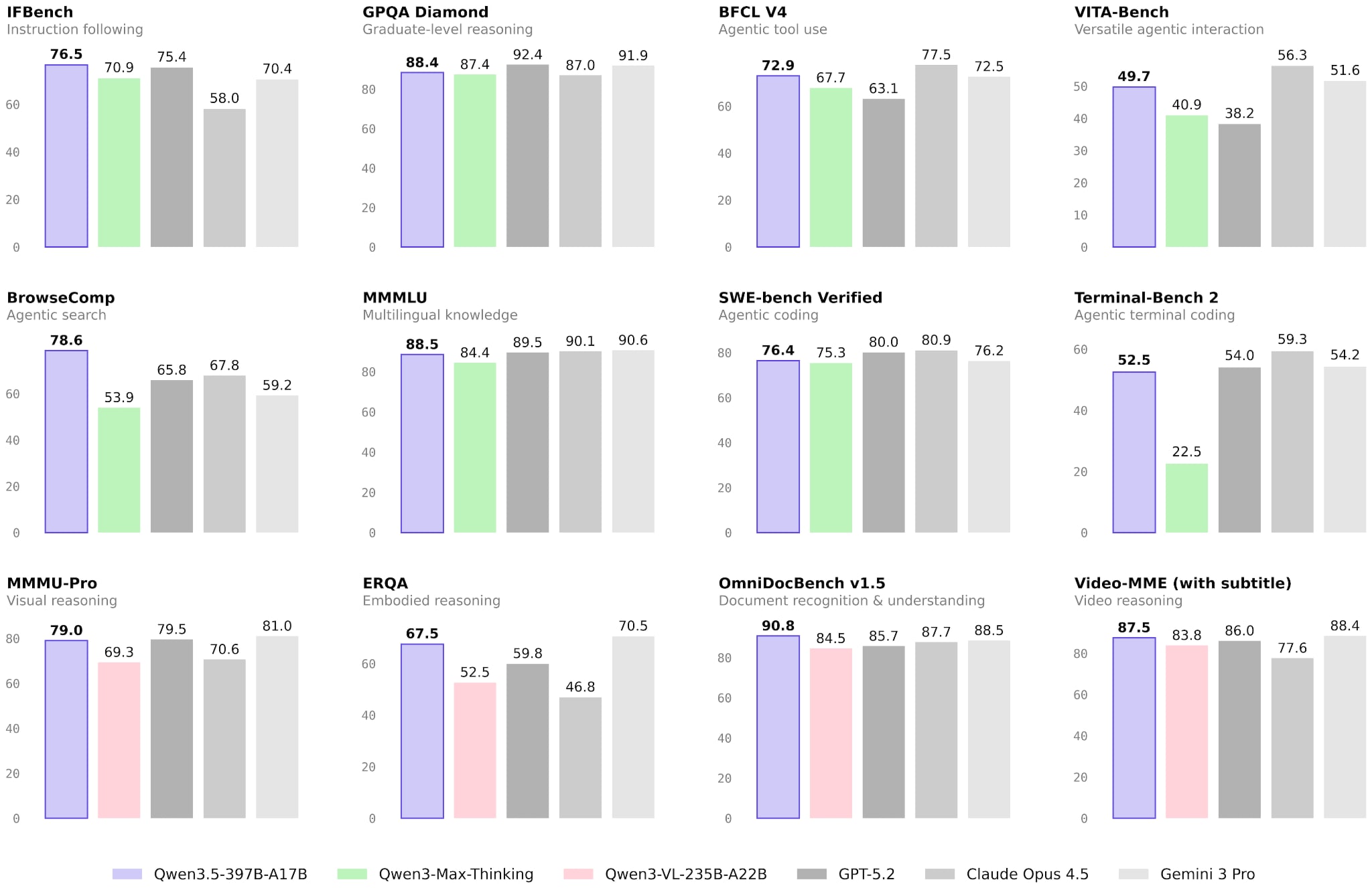 Figure 30: Qwen3.5 benchmark overview from the official model hub page.