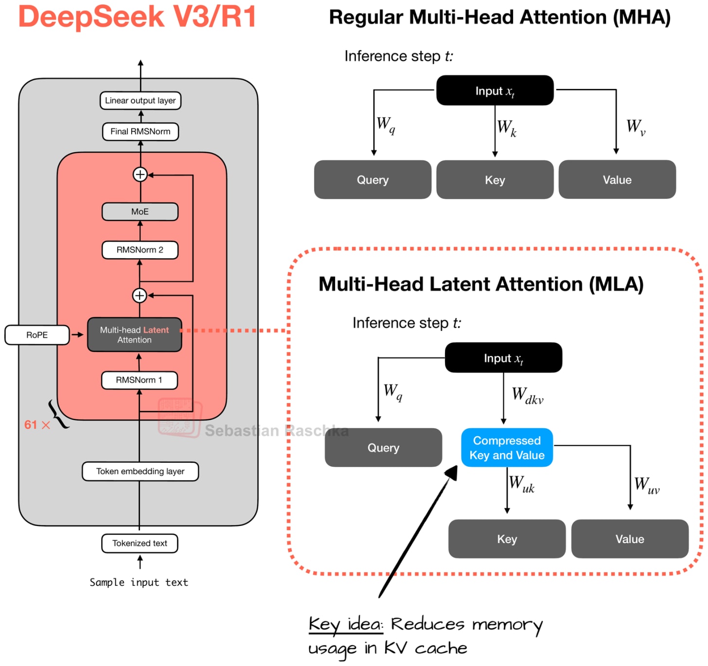 By the way, as mentioned earlier, MLA is not new in DeepSeek V3, as its DeepSeek V2 predecessor also used (and even introduced) it.
