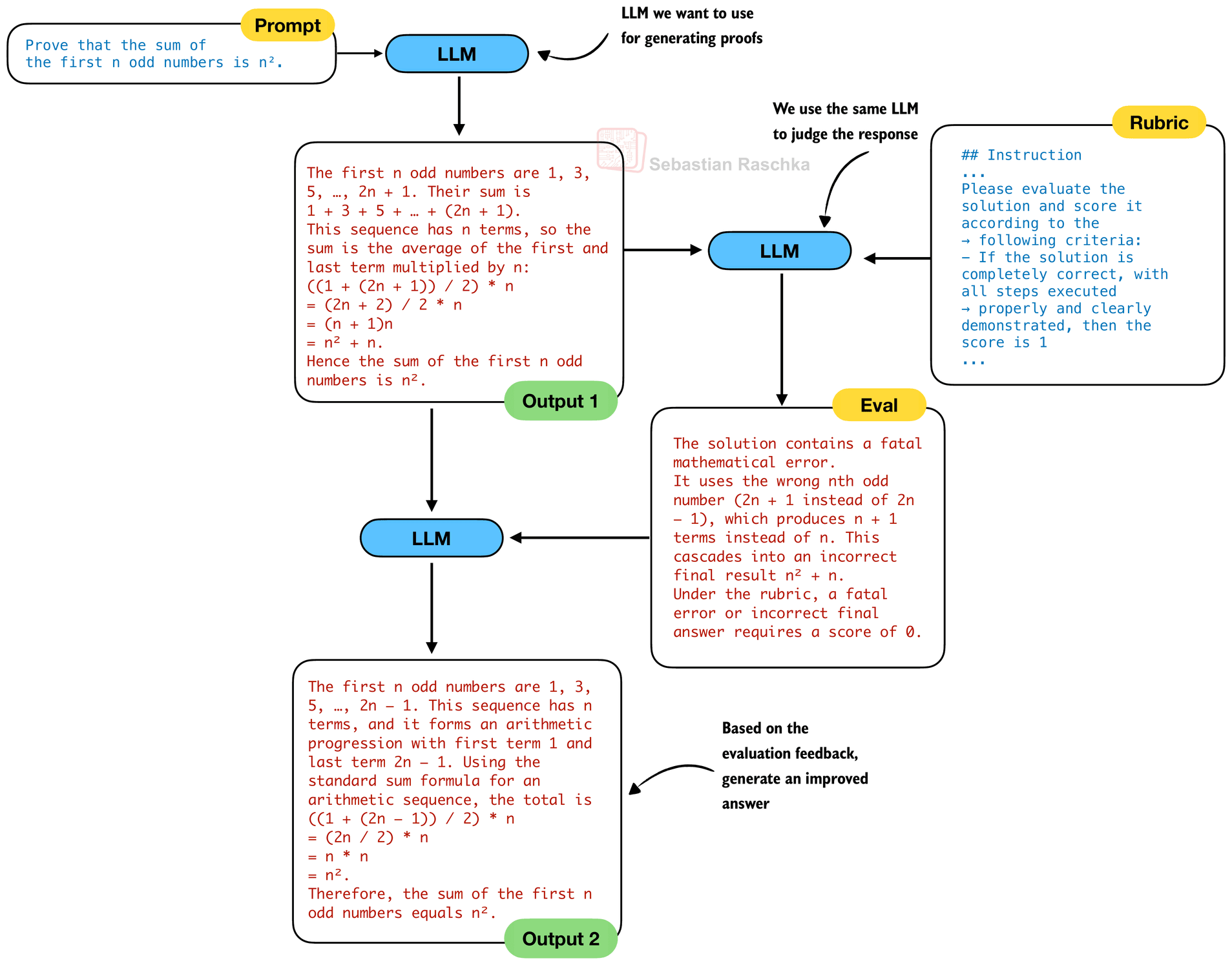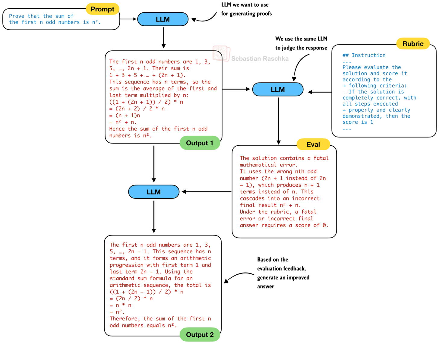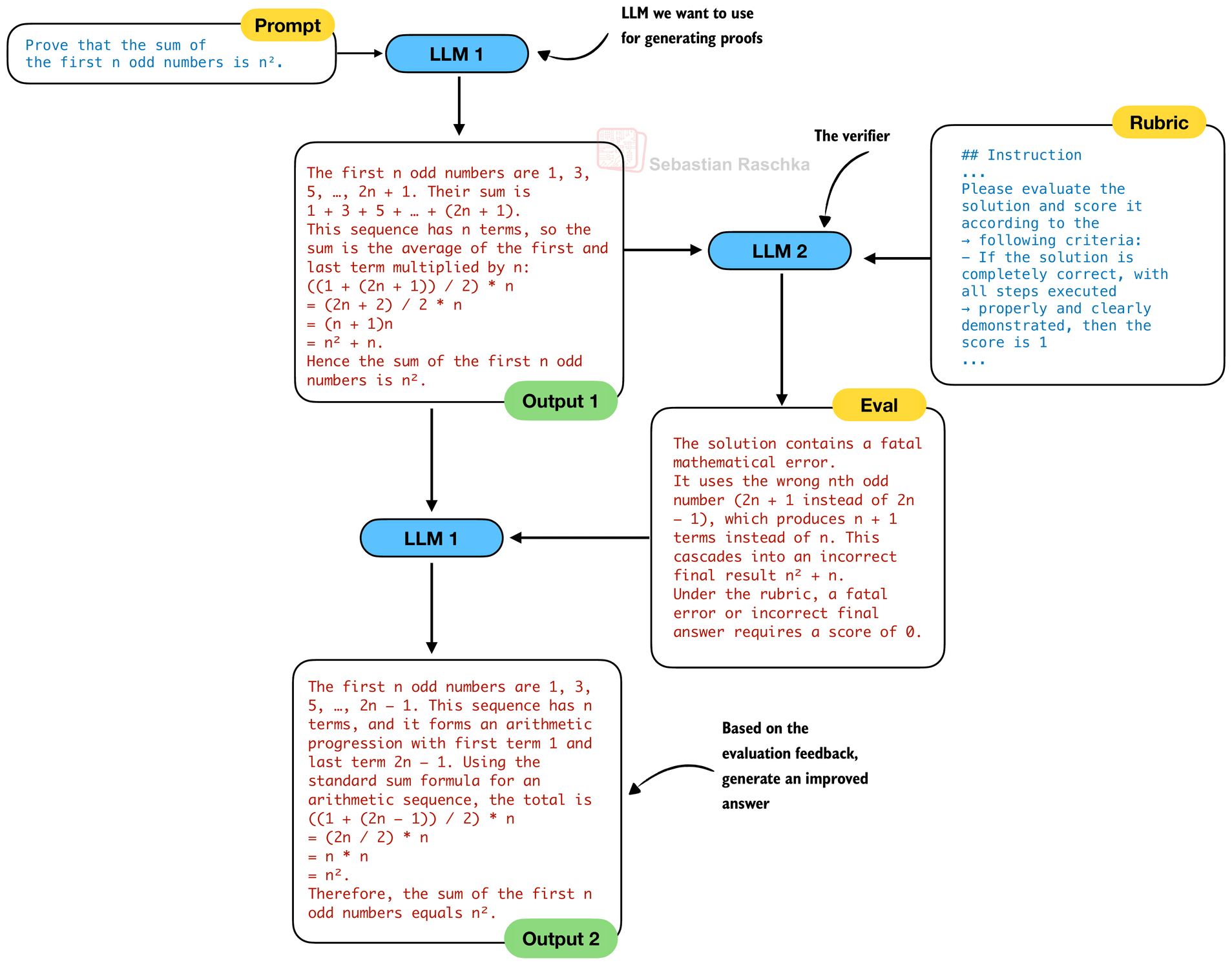In addition to this self-verification via an LLM as described above, they also use self-refinement (covered in the upcoming Chapter 5 of my Build a Reasoning Model (From Scratch) book) to have the LLM iteratively improve its own answers.