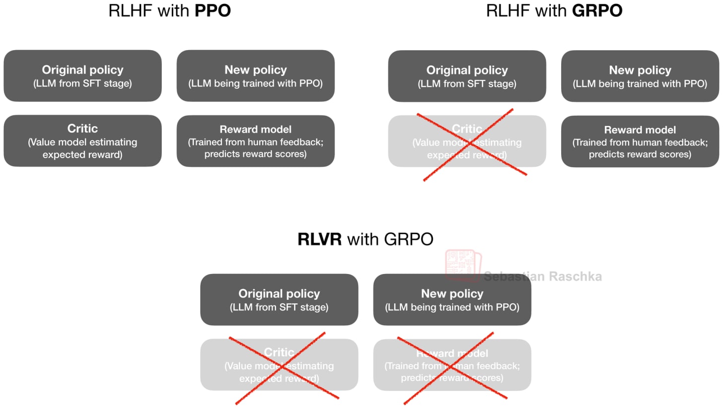 The GRPO algorithm, which is short for Group Relative Policy Optimization, is essentially a simpler variant of the Proximal Policy Optimization (PPO) algorithm that is popular in Reinforcement Learning with Human Feedback (RLHF), which is used for LLM alignment.
