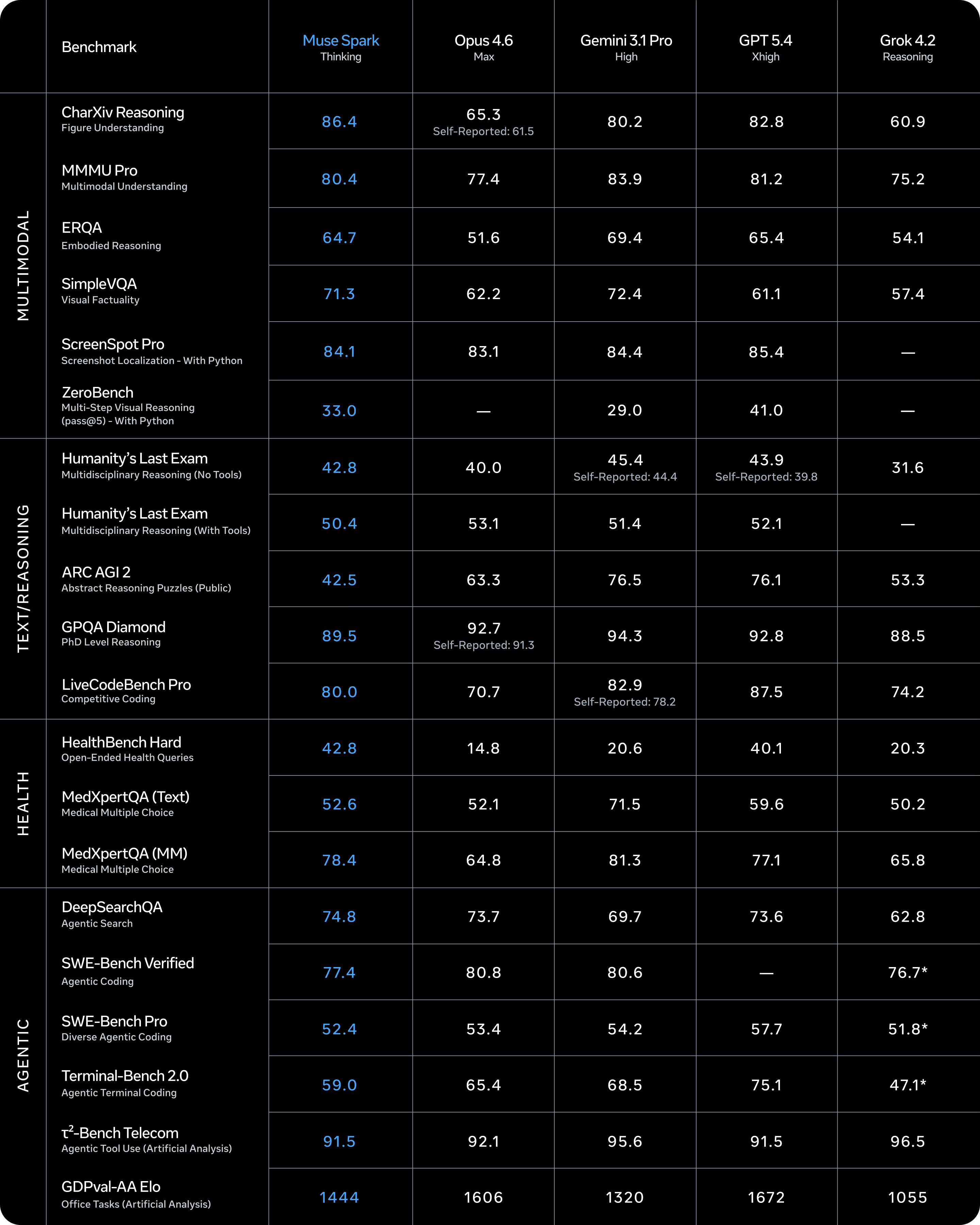 Benchmarks from the Muse Spark website